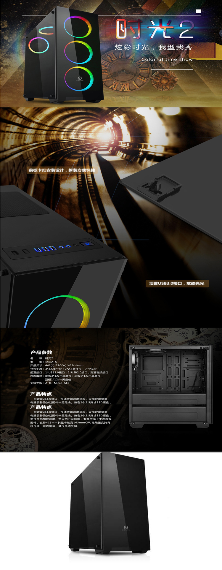 游戏风暴 时光2 全侧透炫彩游戏机箱 云南电脑批发