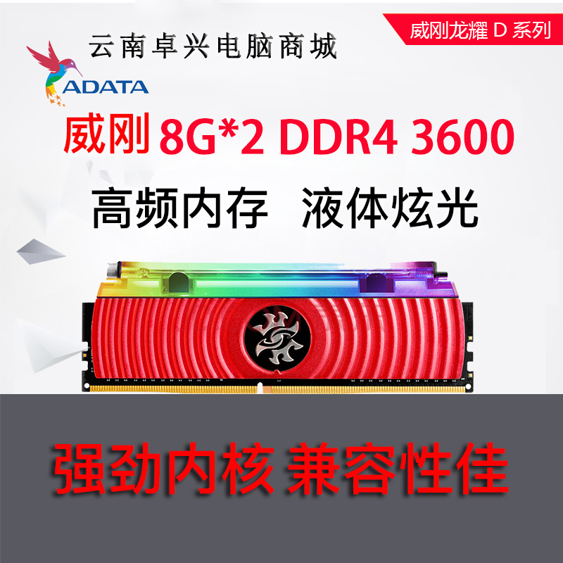 威刚D80 龙耀 XPG 16G (8G*2) DDR4 3600 RGB液压灯条游戏吃鸡高频内存发烧高配 云南电脑批发推荐