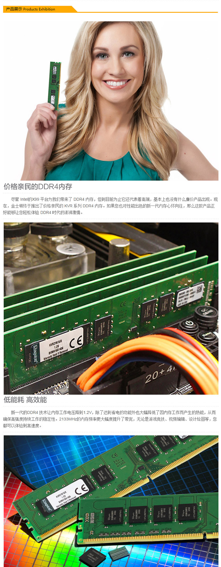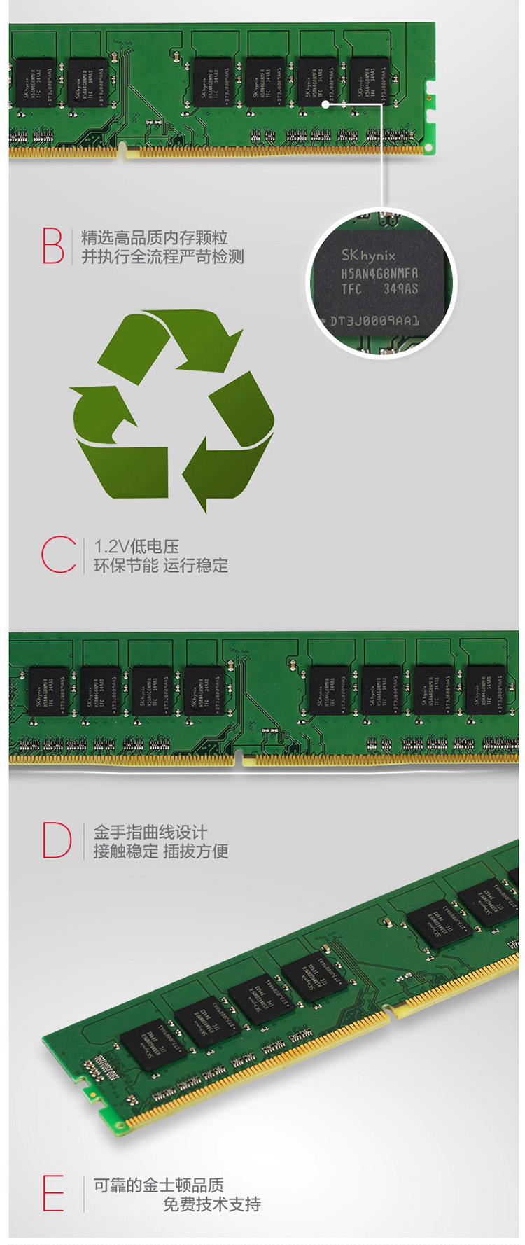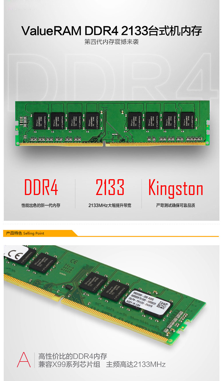 云南电脑批发 金士顿(Kingston)DDR4 2133 4GB 台式机内存