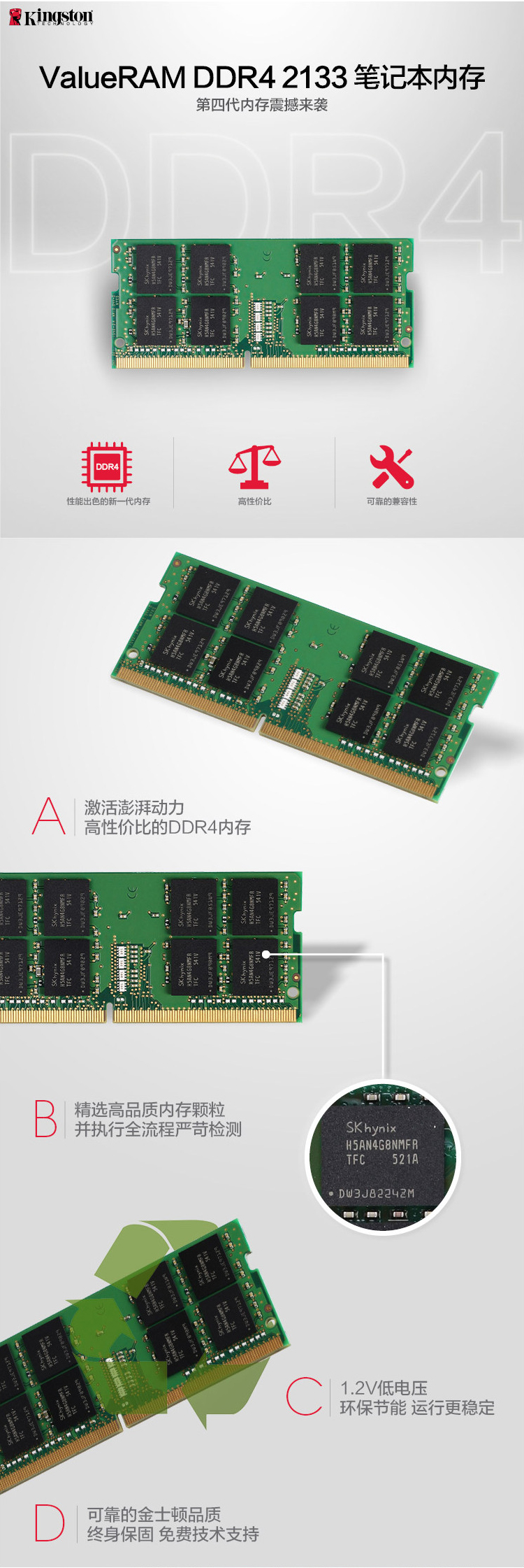 • 商品名称:金士顿(Kingston) DDR4 2133/2400 4G/8G/16G 笔记本电脑内存条 金士顿四代8g 2133内存条