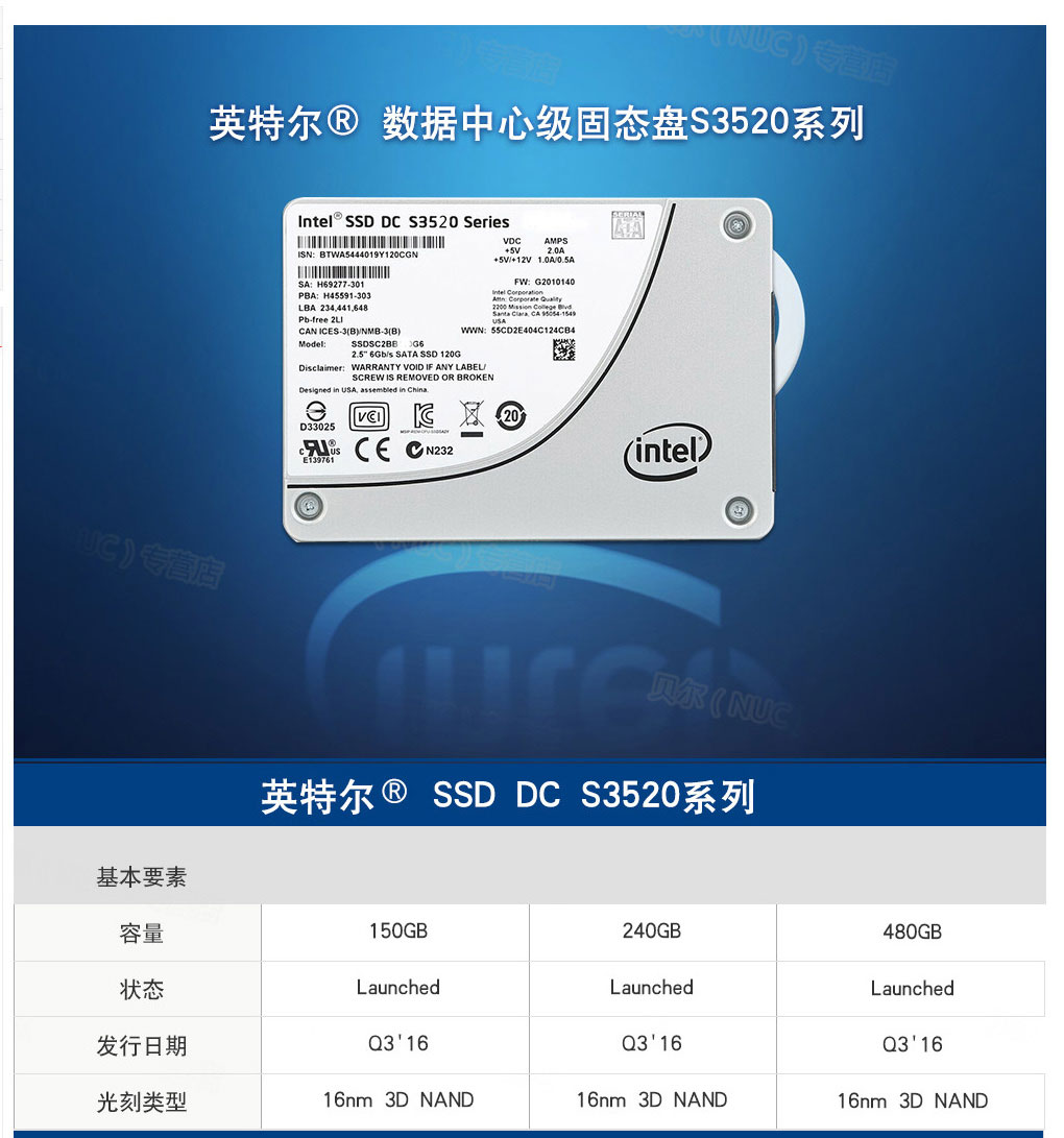 • 产品名称: Intel/英特尔 S3520 480G