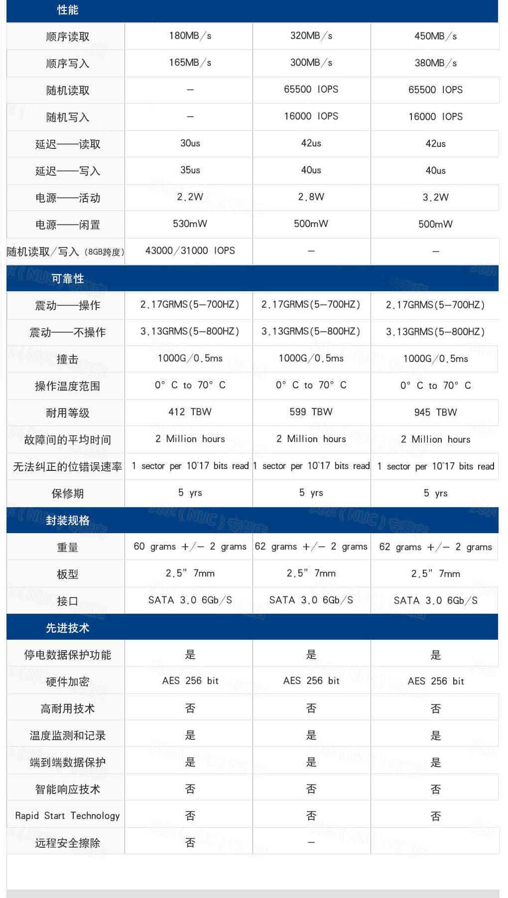 规格 SSD固态硬盘
