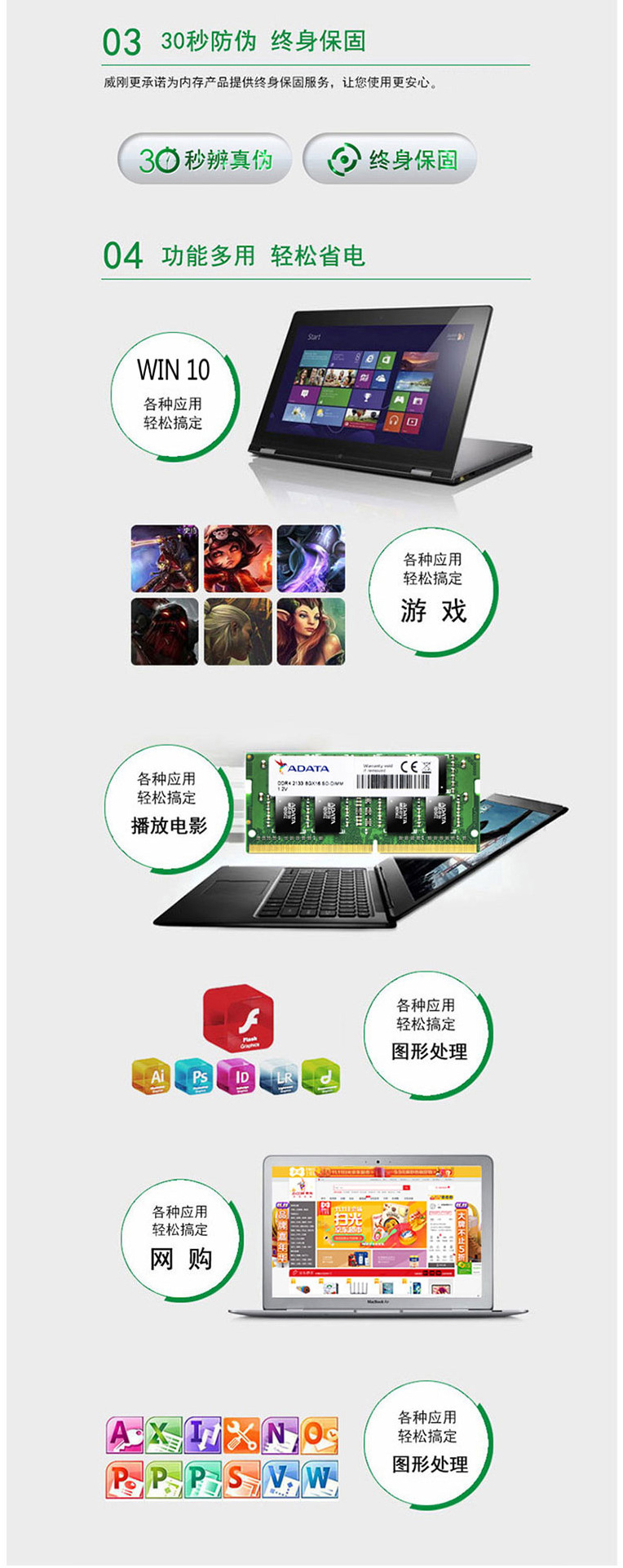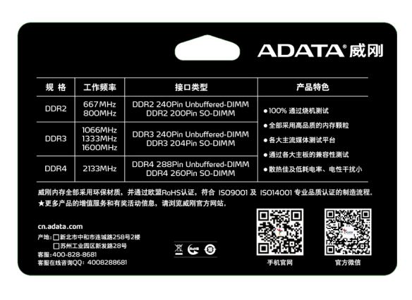 • 商品名称:威刚(ADATA) XPG-威龙/万紫千红系列 台式机笔记本 电脑升级电竞游戏加速马甲内存条 笔记本DDR3代 1600 8GB