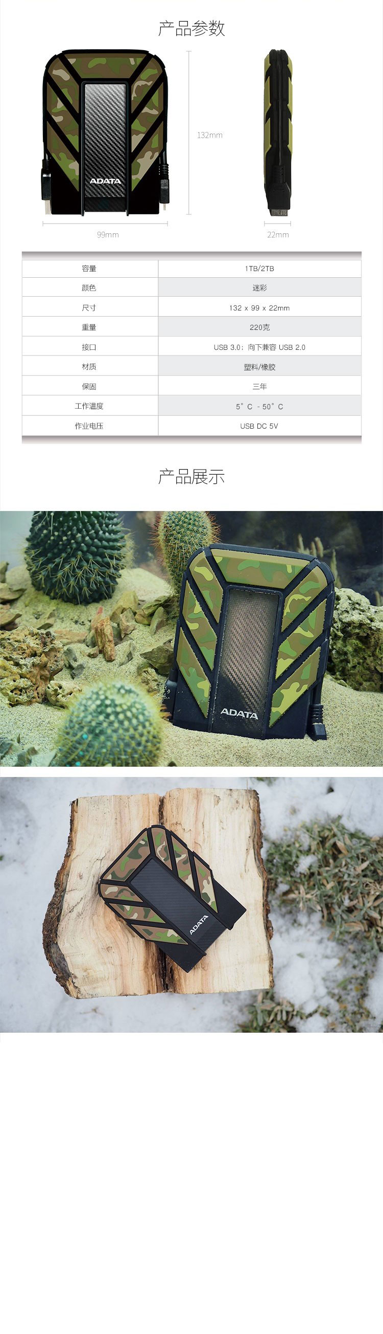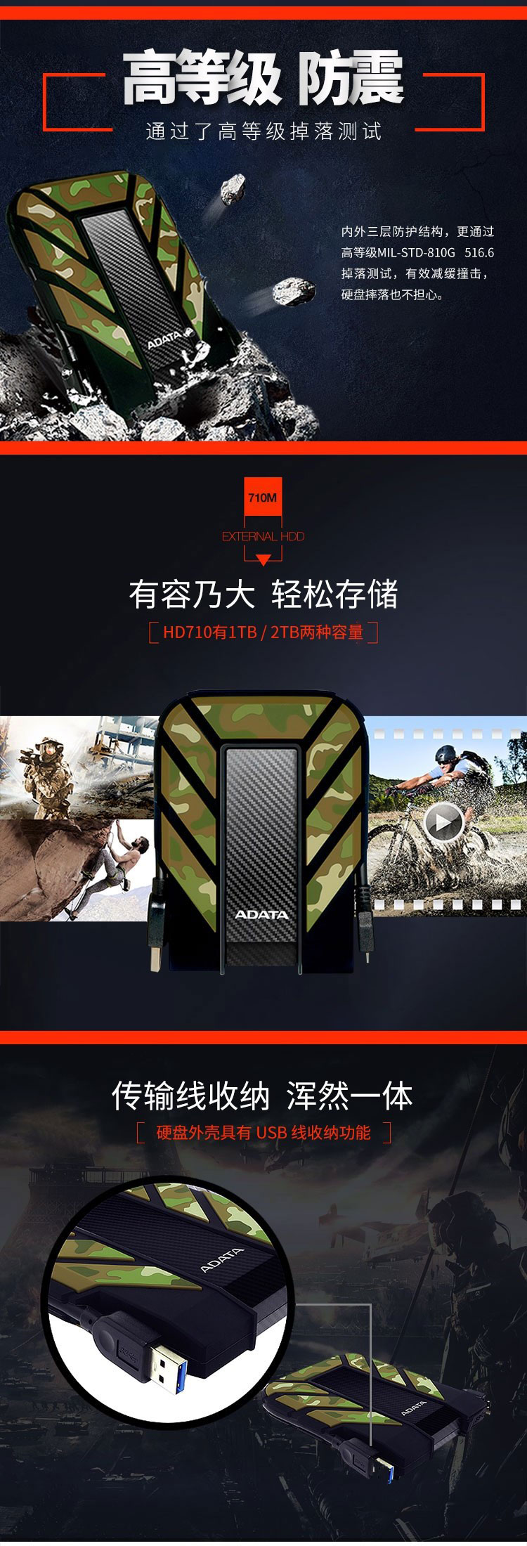 云南硬盘批发 威刚 ADATA HD7B IP68防水防尘 高等级防震 2.5英寸 USB3.010M 1T