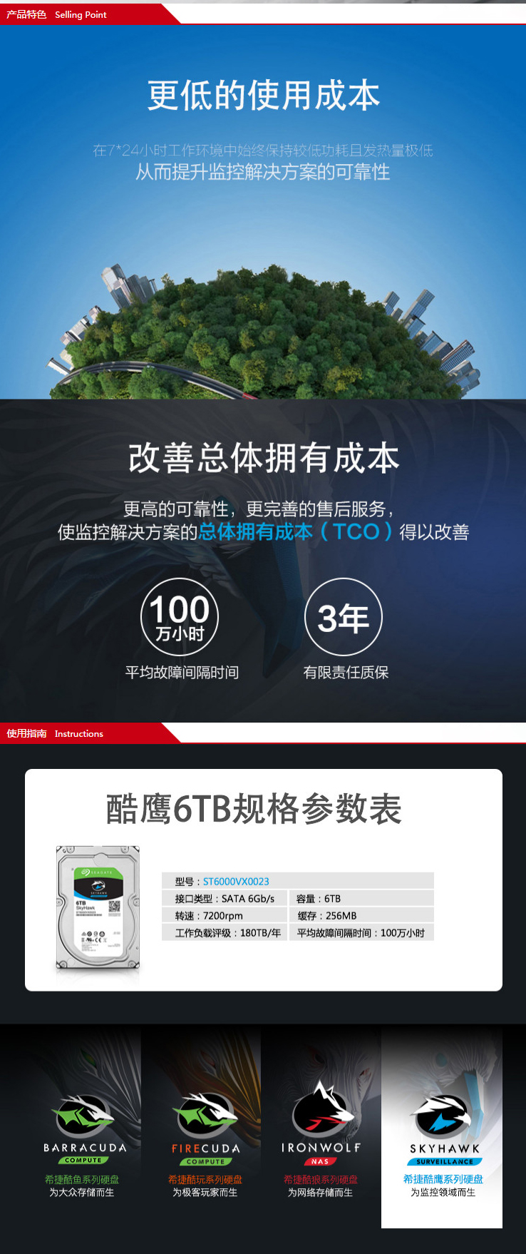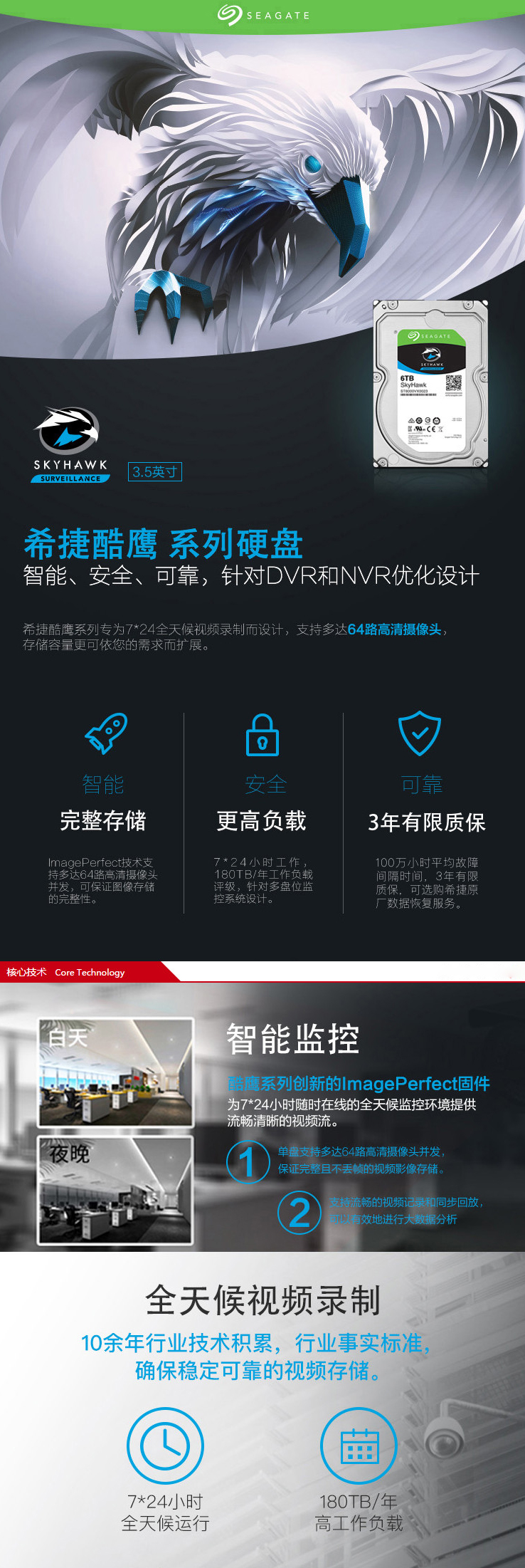 云南硬盘批发 希捷(SEAGATE)酷鹰系列 6TB 7200转256M SATA3 监控级硬盘
