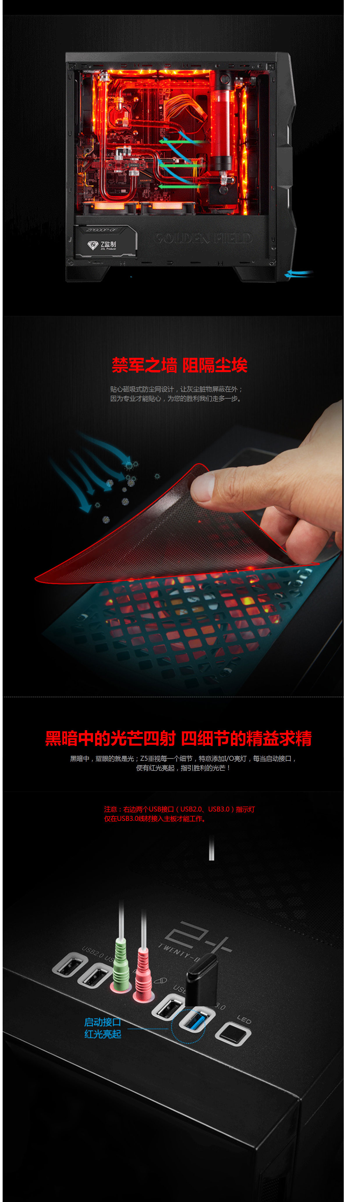 云南金河田机箱批发 金河田(Golden field)峥嵘Z5 水冷电竞游戏台式机电脑主机机箱(ATX/M-ATX/MINI-ITX/360冷排/呼吸灯)