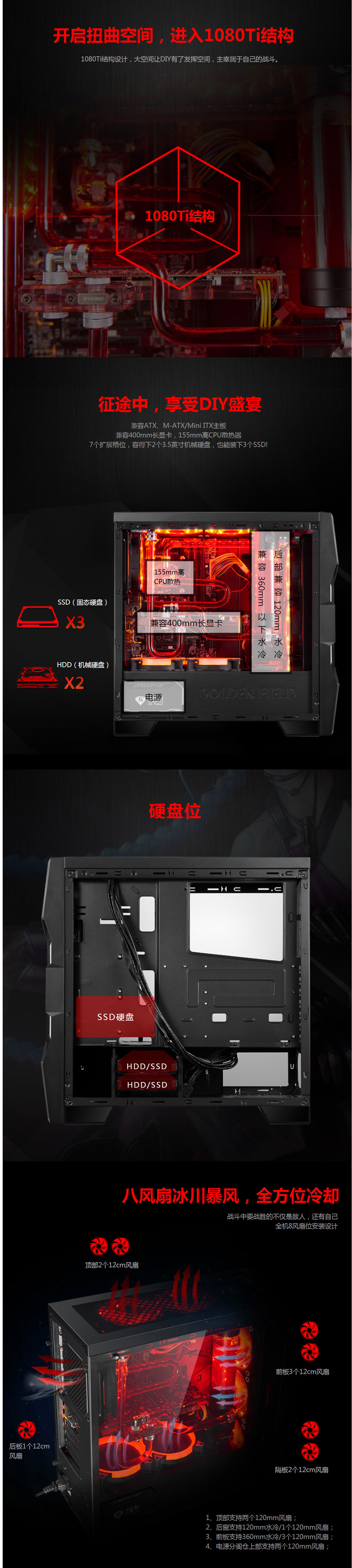 • 支持主板:ATX(标准型),M-ATX(紧凑型),MINI-ITX(迷你型)