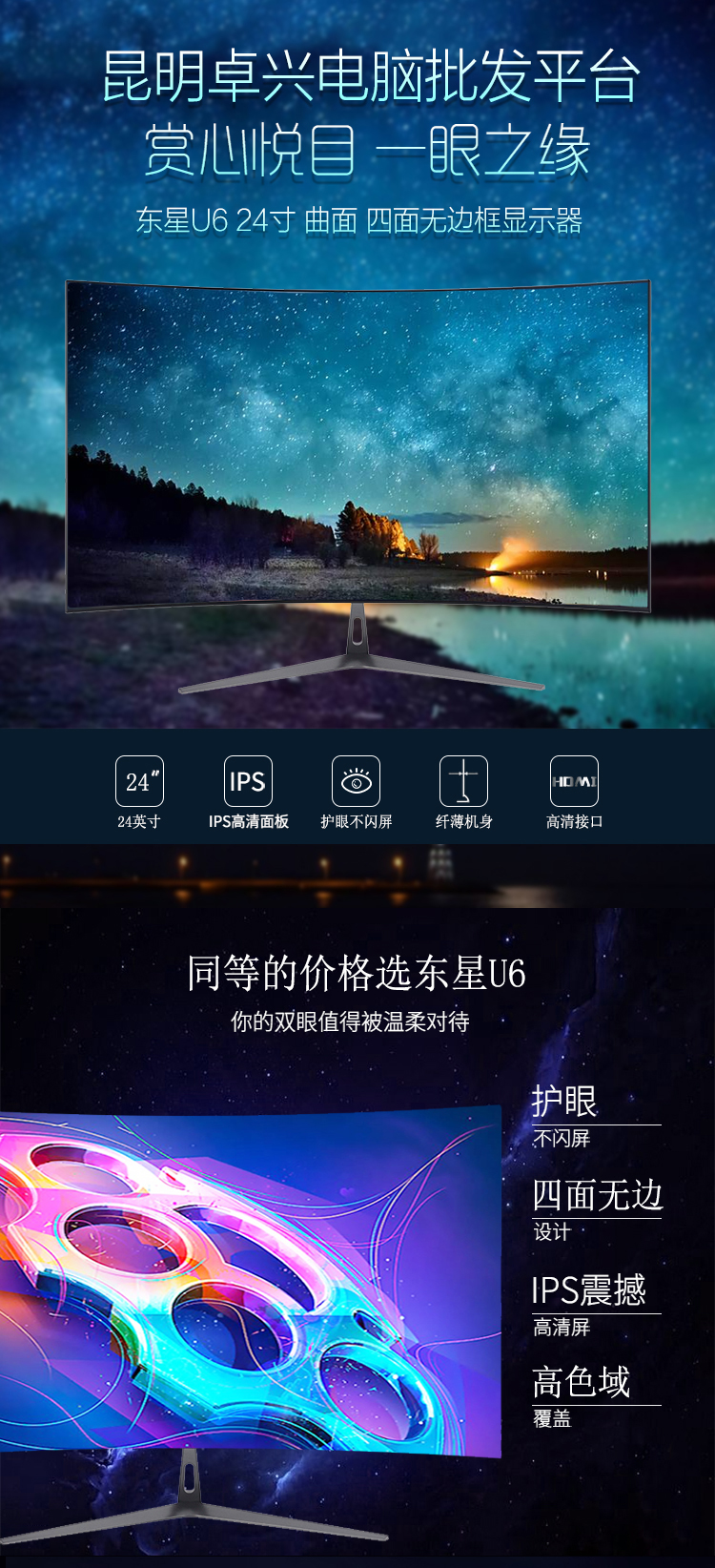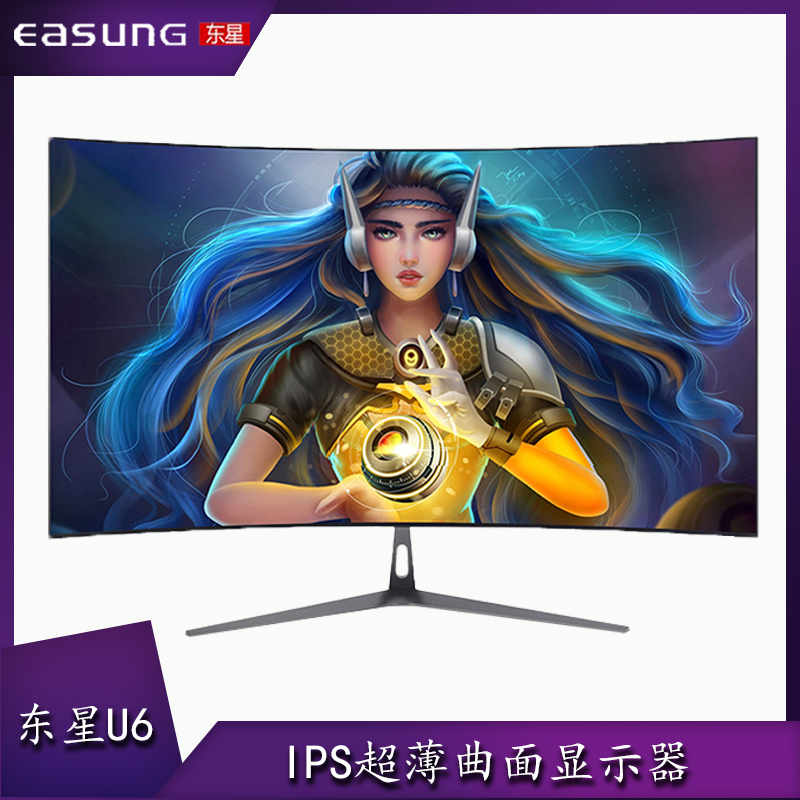 云南东星显示器 EASUNG东星U6 24寸HDMI全高曲面屏led电脑游戏清无边框白色显示器 云南电脑批发