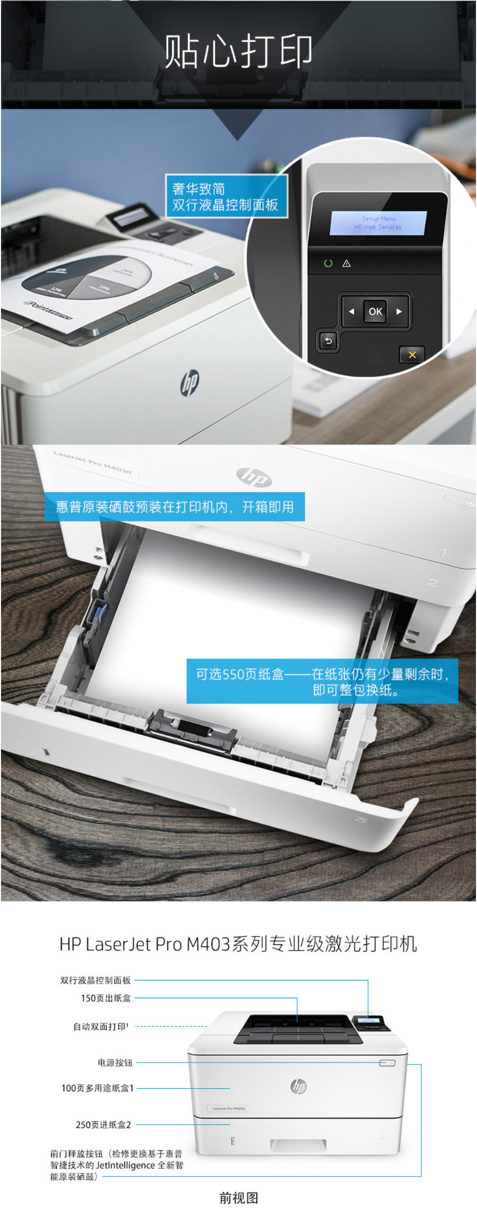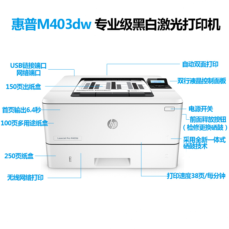 惠普(HP) LaserJet Pro M403D黑白激光打印机