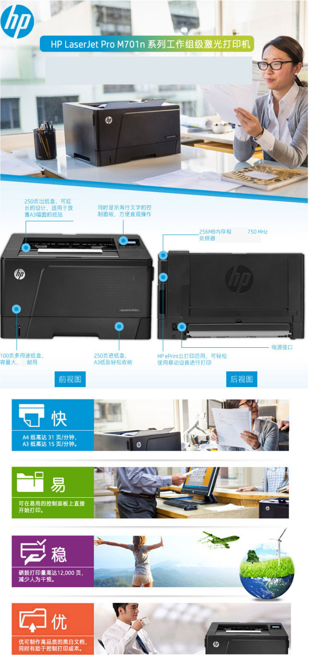惠普(HP) 惠普HP M701n A3黑白激光打印机