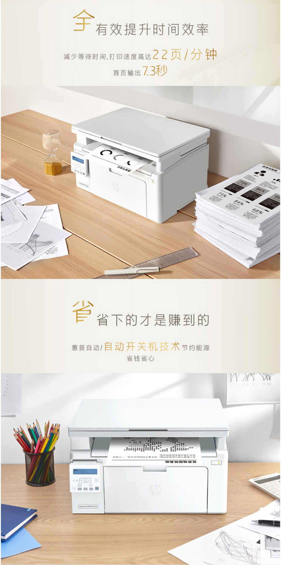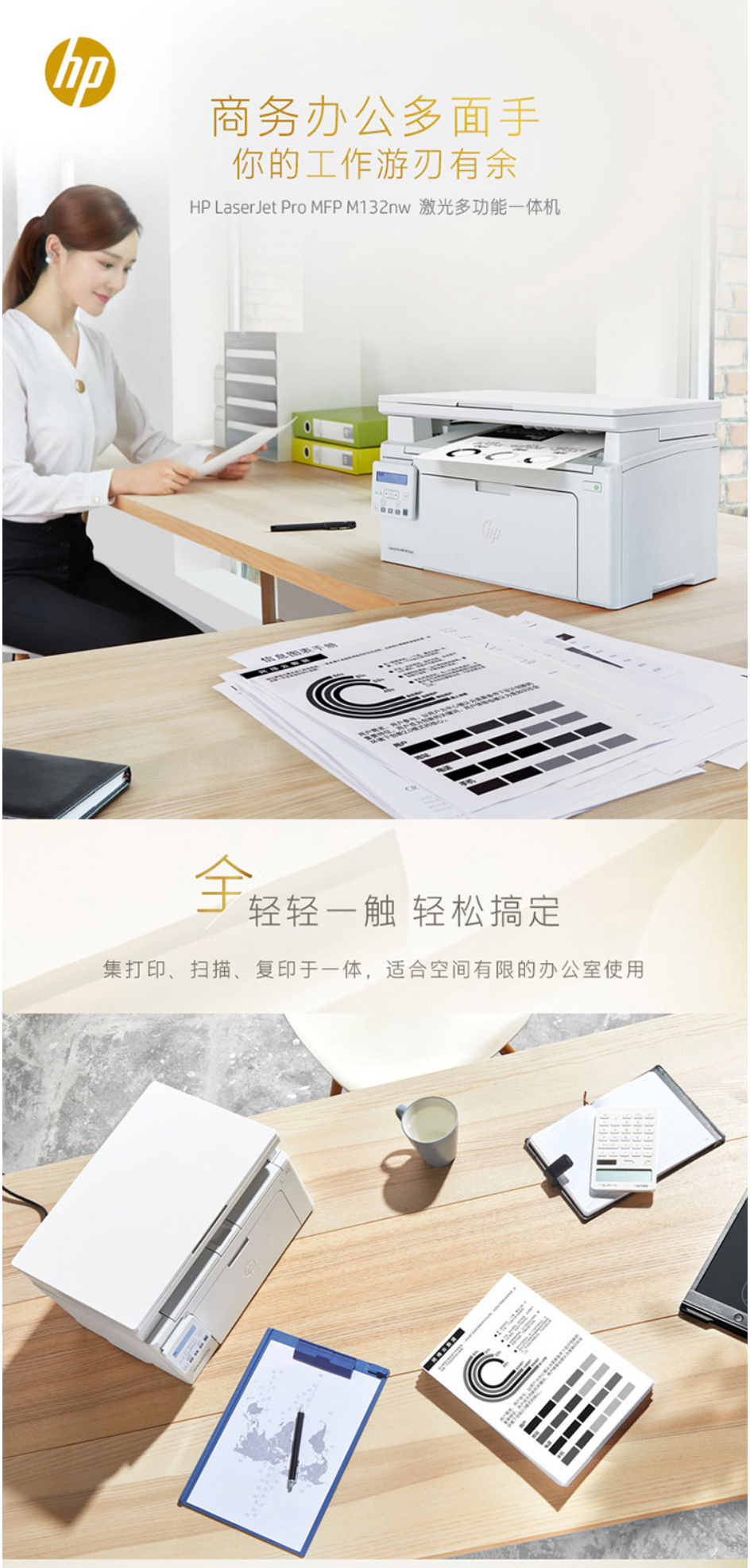 惠普(HP)M132nw黑白激光三合一无线多功能打印机一体机