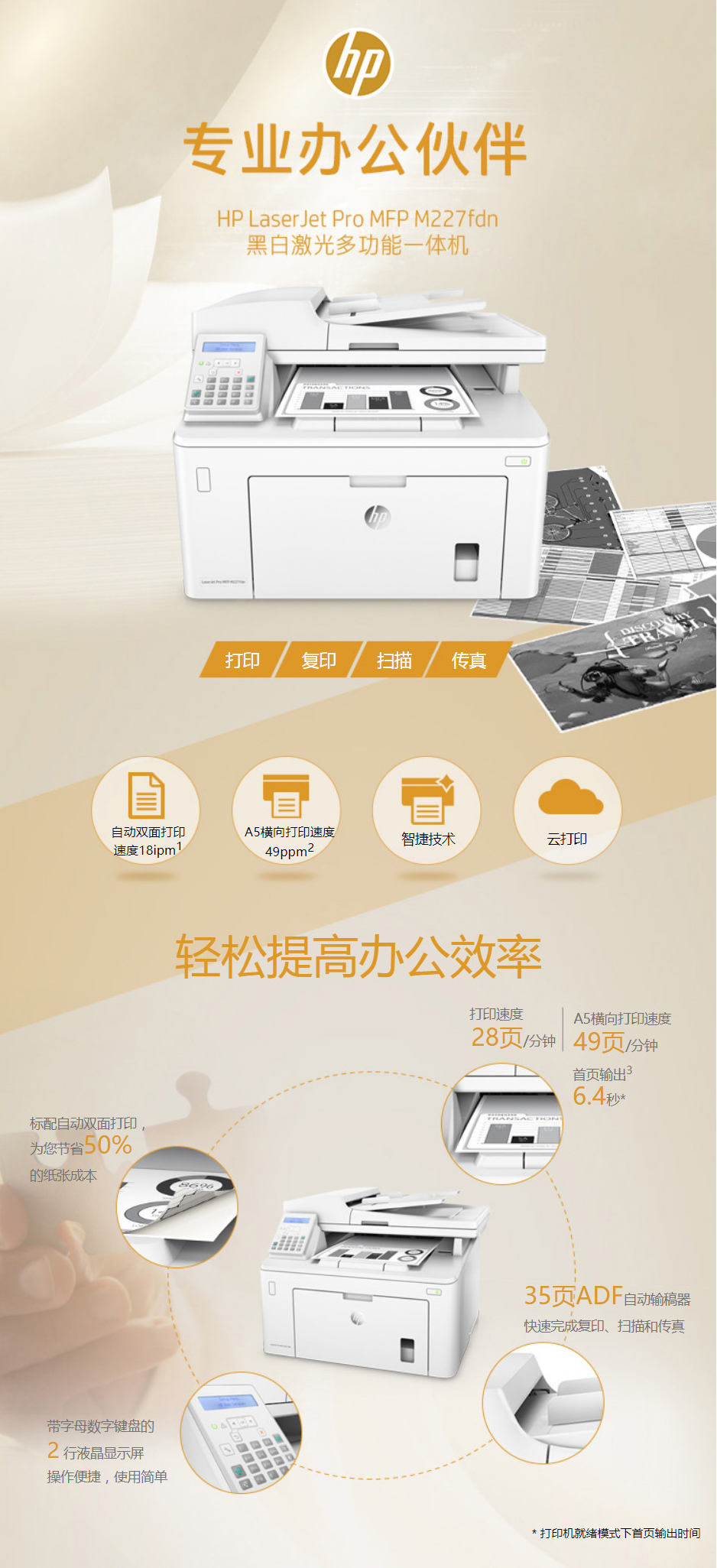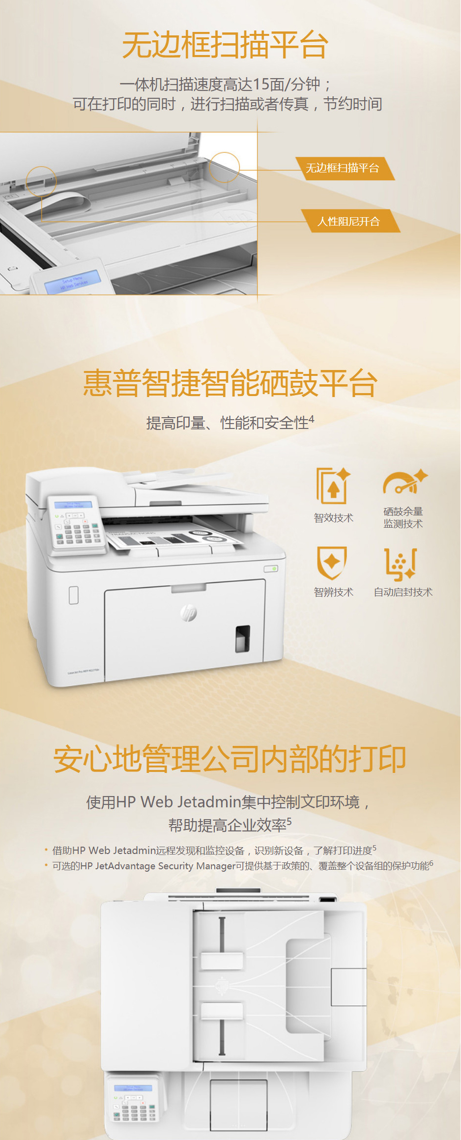惠普(HP) 打印机 227fdn A4黑白激光 多功能复印扫描打印机一体机