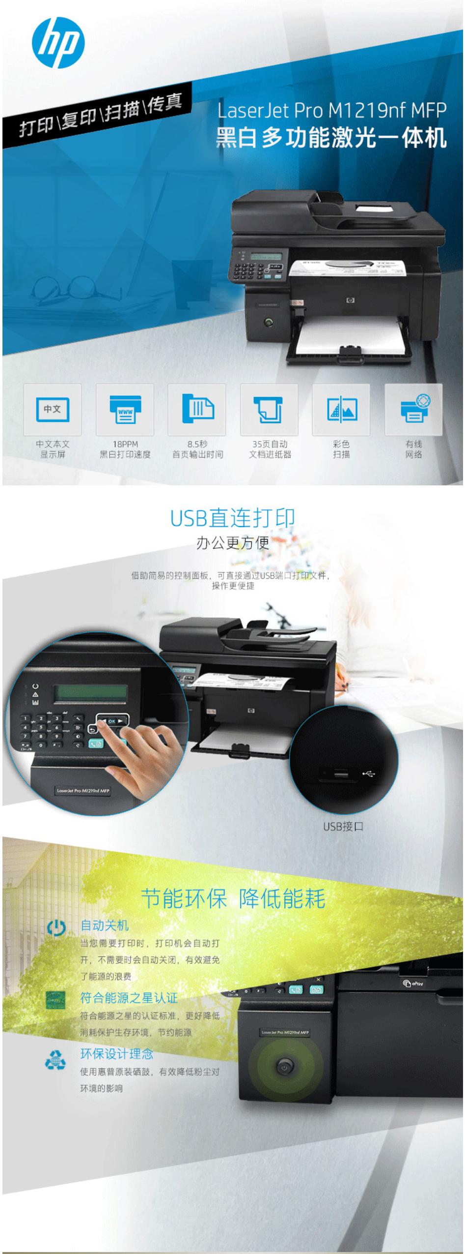 惠普(HP)LaserJet Pro M1219nf 多功能激光一体机