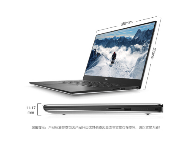 戴尔(Dell) XPS15 15.6英寸轻薄窄边框设计师笔记本电脑(i7-8750H 8G 128GSSD 1T GTX1050Ti MaxQ 4G独显)银