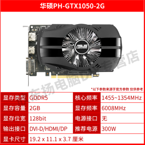 华硕(ASUS) PH-GTX1050-2G 凤凰版 GTX1050独立游戏电脑显卡