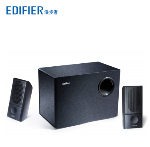 漫步者R201V为标准的2.1声道系统,由低音炮和两个卫星音箱构成。音箱造型简约大方,采用主流的黑色基调,视觉效果侧重稳重风格,可以非常方便融入周边环境。