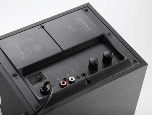 R201V在低音单元背部提供了便捷的旋纽操控调节系统,包括主音量,低音音量旋钮、线路输入插孔、按键开关闭合电路设计。卫星箱连接也十分方便,它不再是卡扣方式,避免了传统音箱操作易触电的问题隐患。