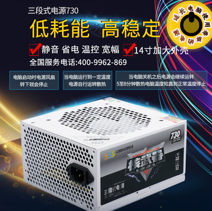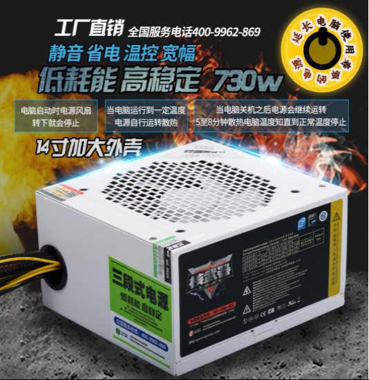 三段式电源666 魔尊80PLUS额定400 静音控温 台式机电源 云南电脑批发