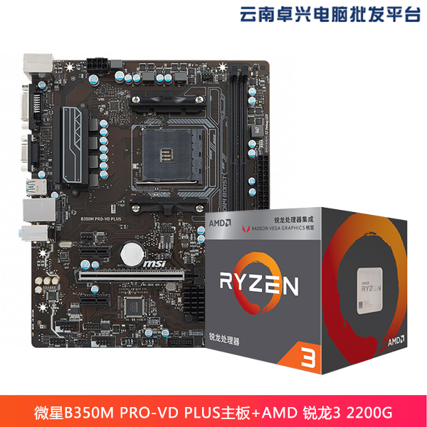 云南卓兴电脑:微星(MSI) B350M PRO-VD PLUS游戏主板+AMD 锐龙3 2200G 处理器 板U套装