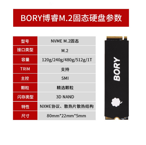 • 商品名称:BORY博睿 480G M.2 笔记本 台式机 SSD 固态硬盘 SATA协议 480G