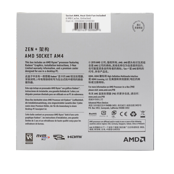 AMD 锐龙5 3400G 处理器 (r5) 4核8线程 搭载Radeon Vega Graphics 3.7GHz AM4接口 盒装CPU 昆明CPU批发