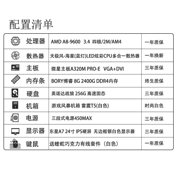 云南卓兴整机:AMD A8-9600/微星A320MH/8G/256G 家用办公高效整机