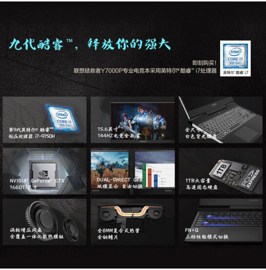 联想拯救者Y7000P 2019游戏笔记本电脑GTX1660Ti独显6G i7-9750H 【16G内存 1TB固态】冰魄白