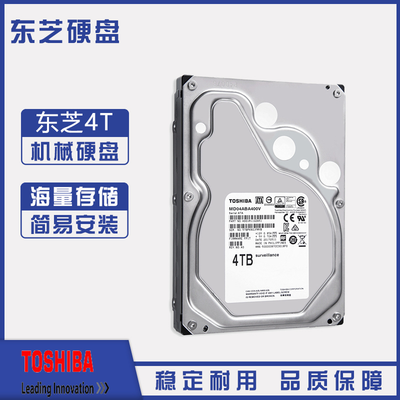 东芝(TOSHIBA) 4TB 128MB 5400RPM 监控硬盘 SATA接口 监控系列 (MD04ABA400V) 监视应用优化