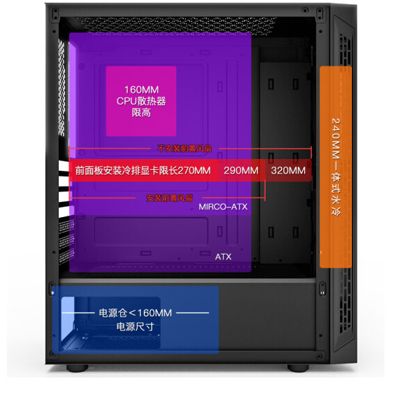 • 支持主板:ATX(标准型),M-ATX(紧凑型),MINI-ITX(迷你型)