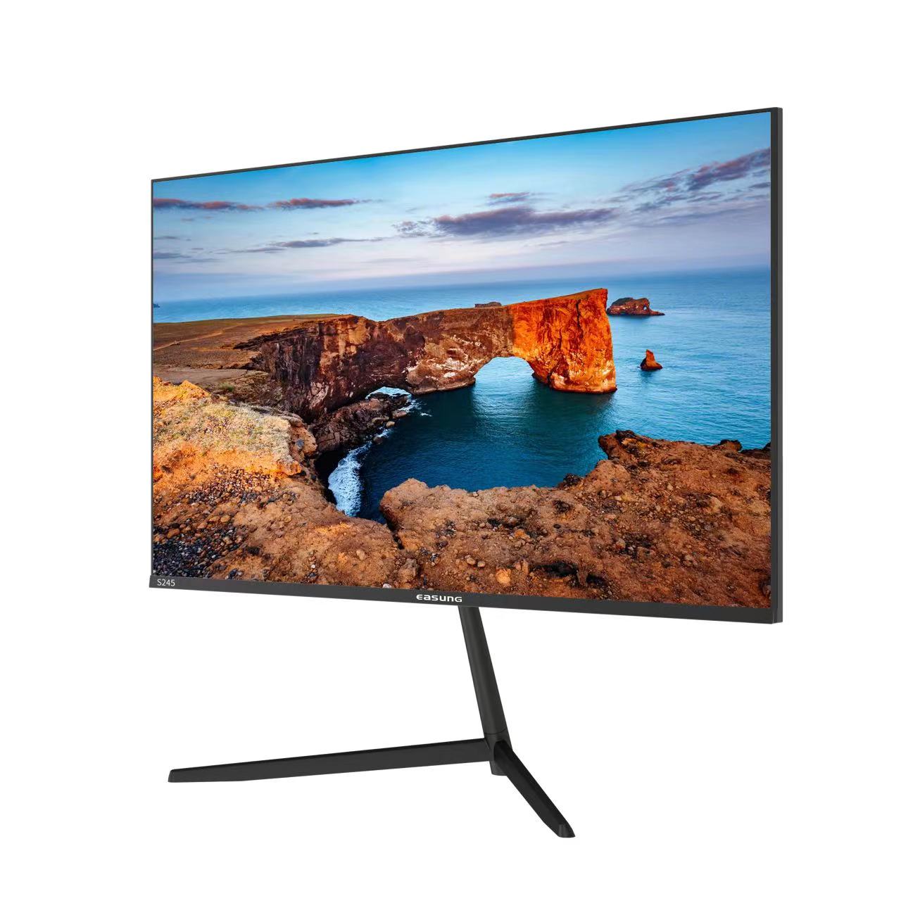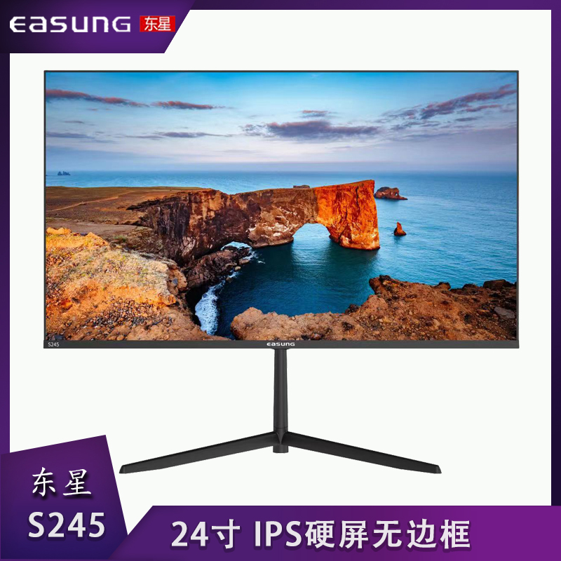 东星S245 24寸 IPS硬屏无边框V型底座黑色显示器 VGA+HDM