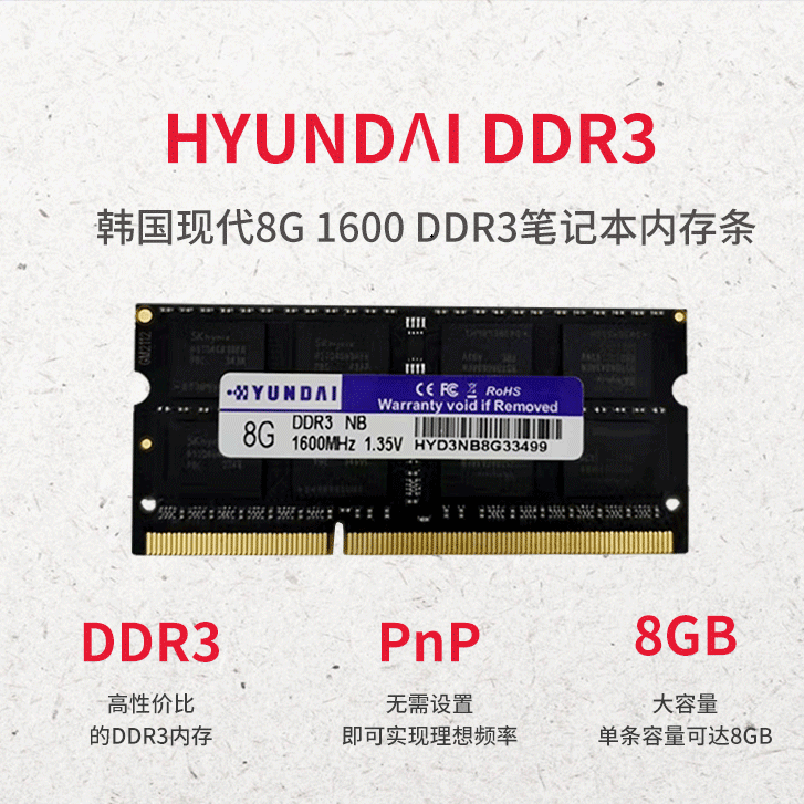 韩国现代 8G 1600 DDR3 笔记本内存条