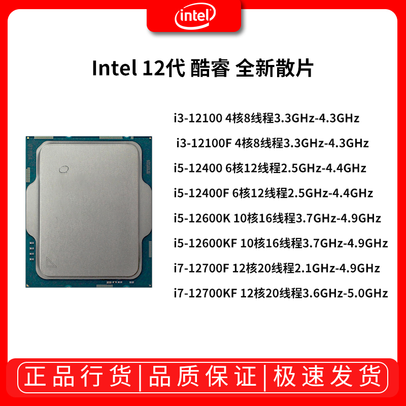 英特尔(Intel)12代 酷睿 i3-12100 处理器 4核8线程 单核睿频至高可达4.3Ghz 散片