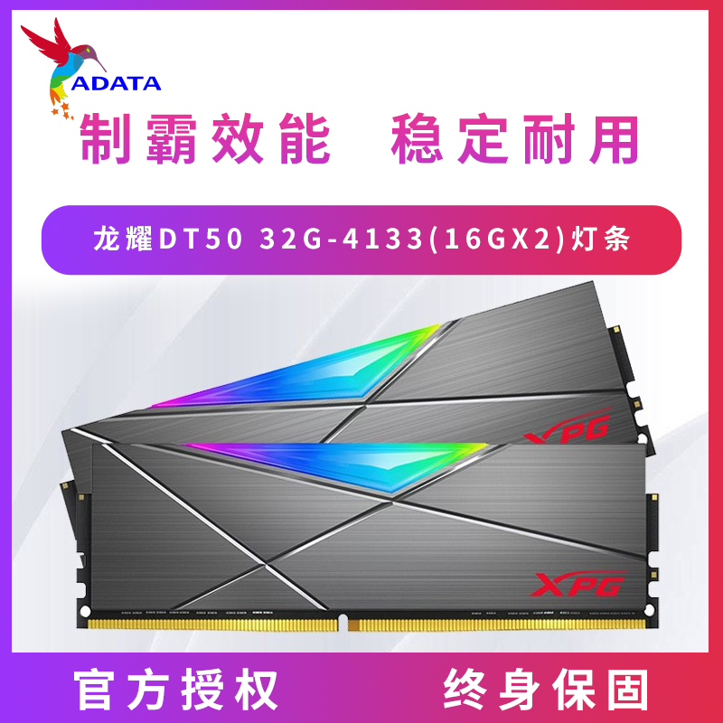威刚XPG 龙耀DT50 32G-4133(16GX2)RGB灯条 DDR4 钛灰