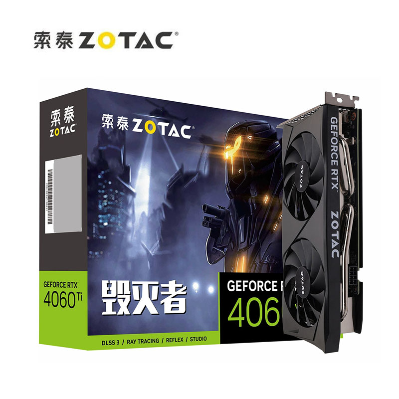索泰(ZOTAC)RTX 4060Ti-8GB 毁灭者 OC HA 3D渲染设计 电竞游戏独立显卡