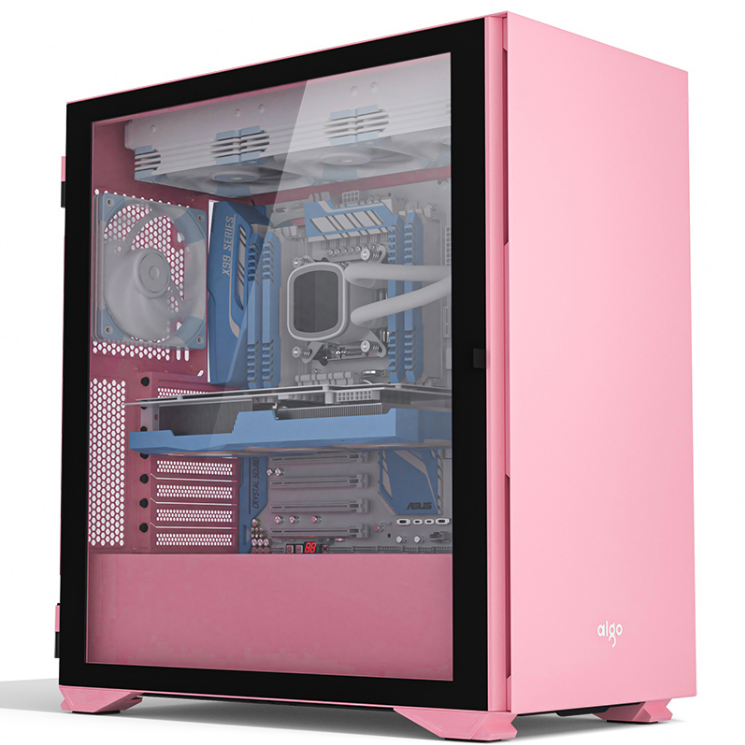 aigo爱国者YOGO K1粉色 超高兼容性 9风扇位 电脑机箱(支持E-ATX/ATX主板/双360水冷/钢化玻璃