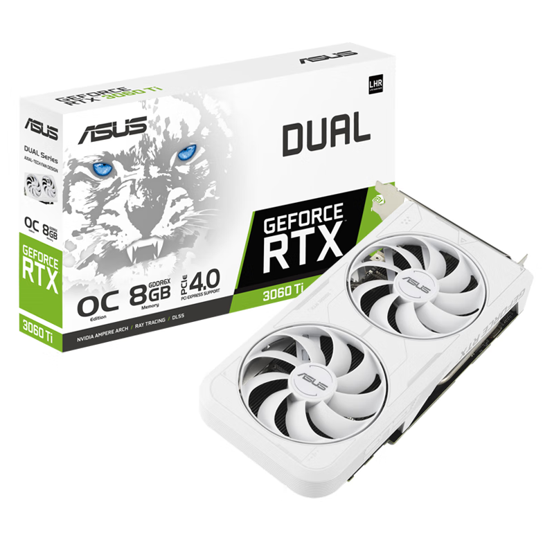 华硕(ASUS)DUAL-RTX3060TI-O8GD6X-WHITE 雪豹系列电竞游戏专业独立显卡