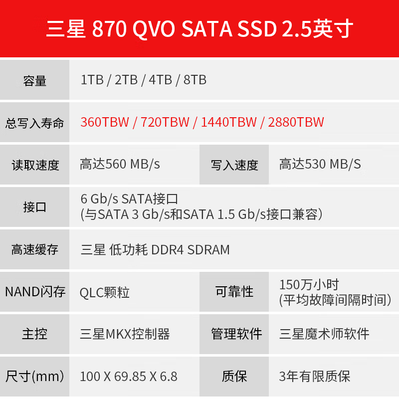 三星870 QVO 2TB 2.5寸固态硬盘
