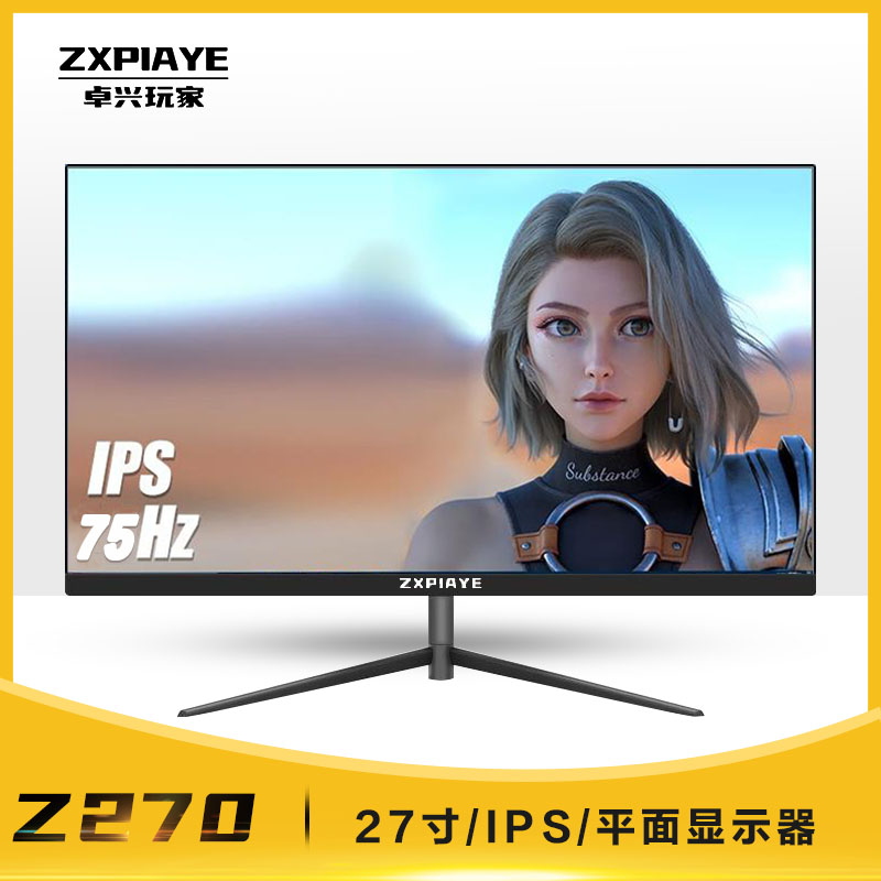 卓兴玩家 Z270 27寸IPS硬屏 黑色平面无边框超薄显示器 V型底座 HDMI+VGA 显示器批发