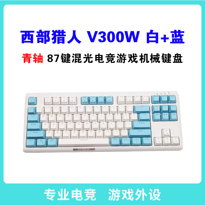 西部猎人 V300W 青轴 白+蓝 87键三模无线机械键盘(带蓝牙) 云南键盘批发