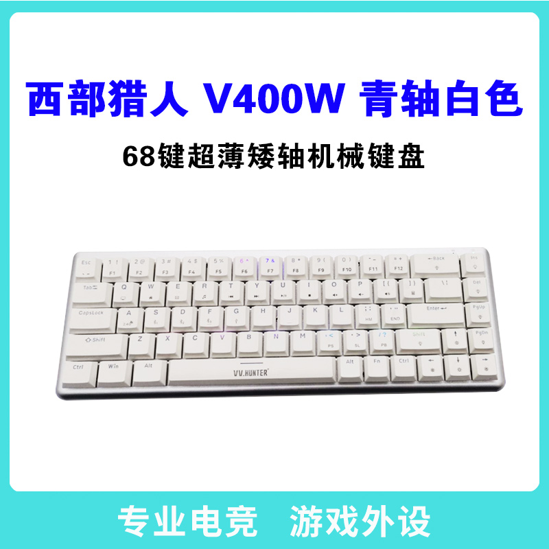 西部猎人 V400W 青轴(白色) 68键三模超薄矮轴机械键盘 昆明键盘批发