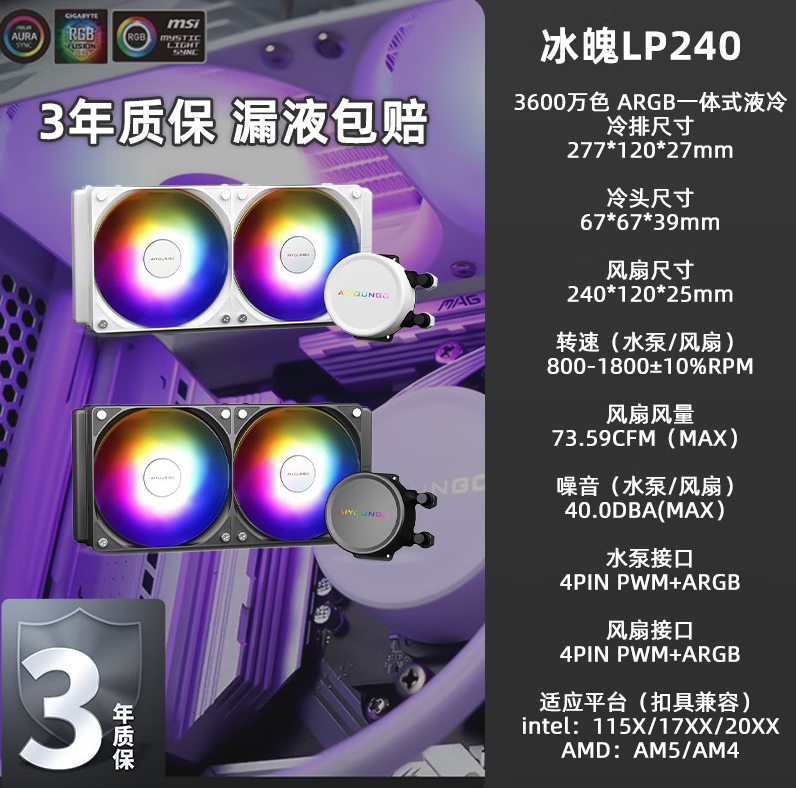 爱国者(aigo)月光宝盒T12 白色 全侧透电脑机箱