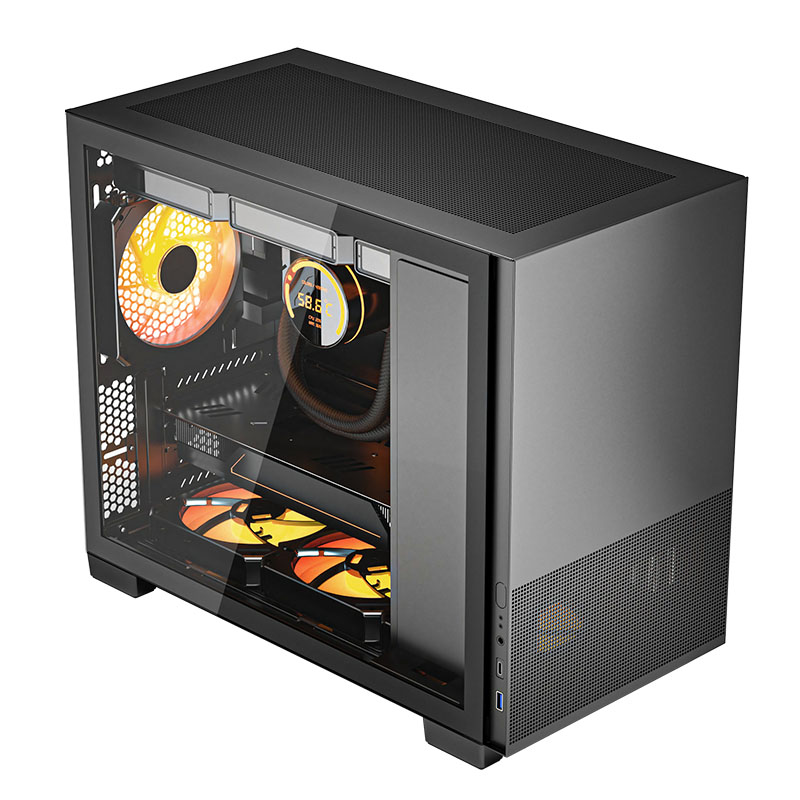 爱国者(aigo)YOGO Q1 黑色 玻璃侧透台式机电脑机箱(支持M-ATX主板/240水冷)