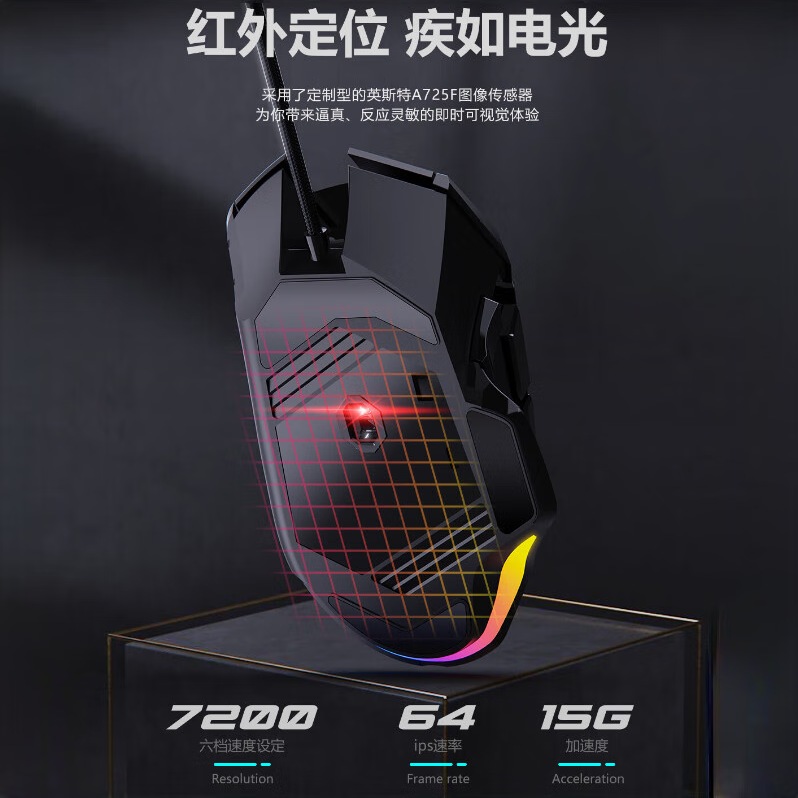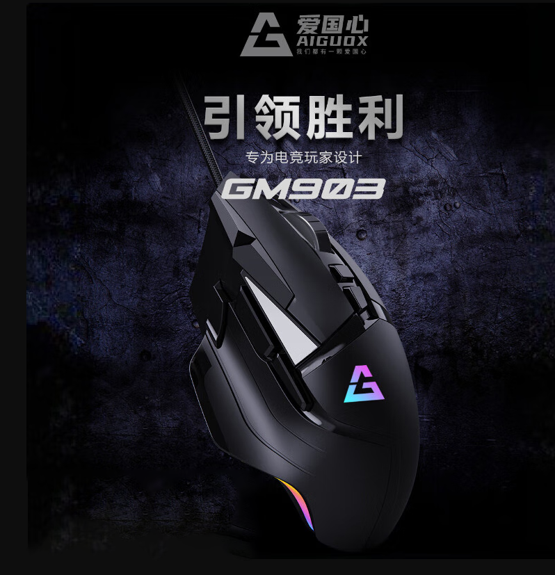 爱国心 GM903 8DRGB幻彩 黑色 电竞游戏鼠标有线鼠标7200dpi