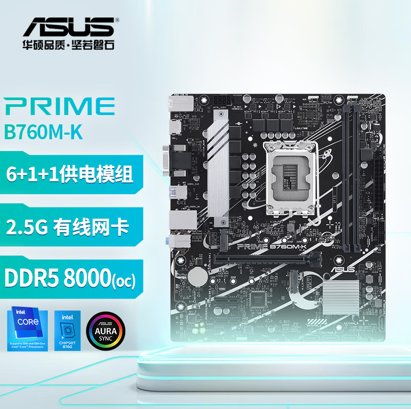 华硕(ASUS)PRIME B760M-K D5主板 支持酷睿12代/13代CPU (INTEL B760/LGA 1700)