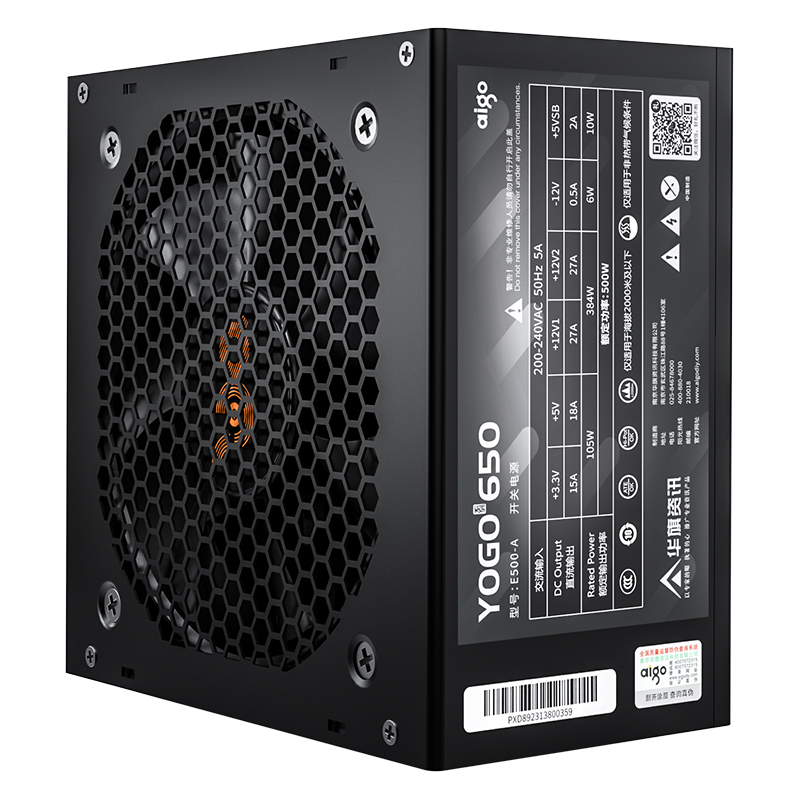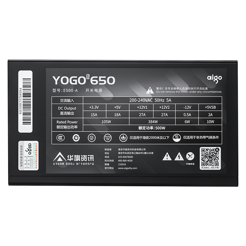 爱国者(aigo) YOGO650 直出线【额定500W】 黑色 电脑开关电源 品质电容/宽幅设计/不虚标