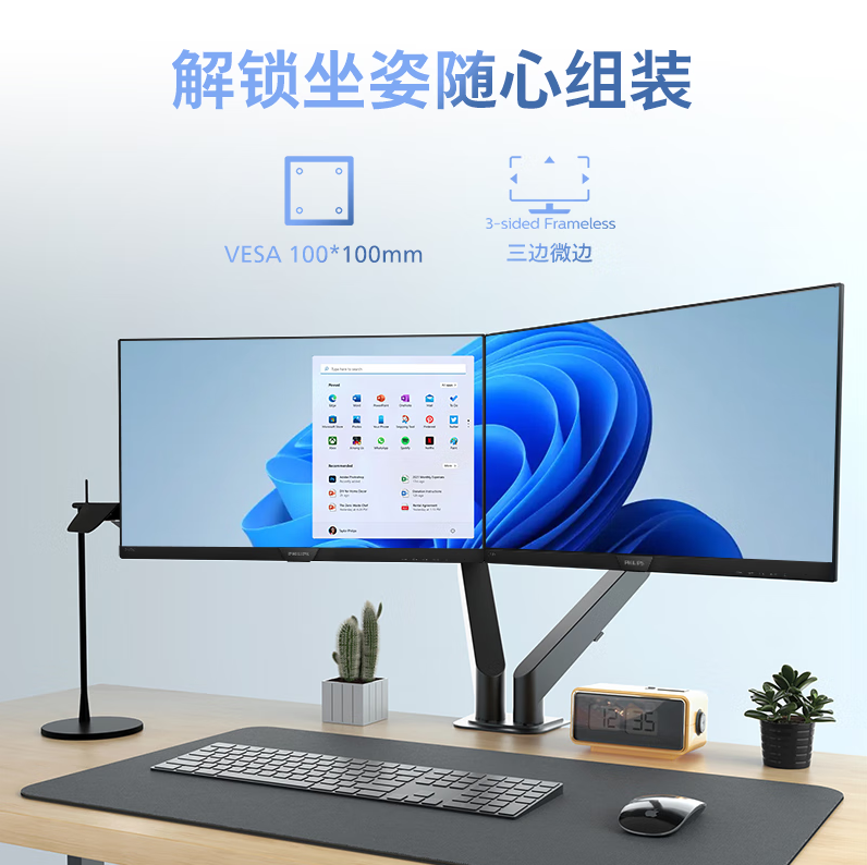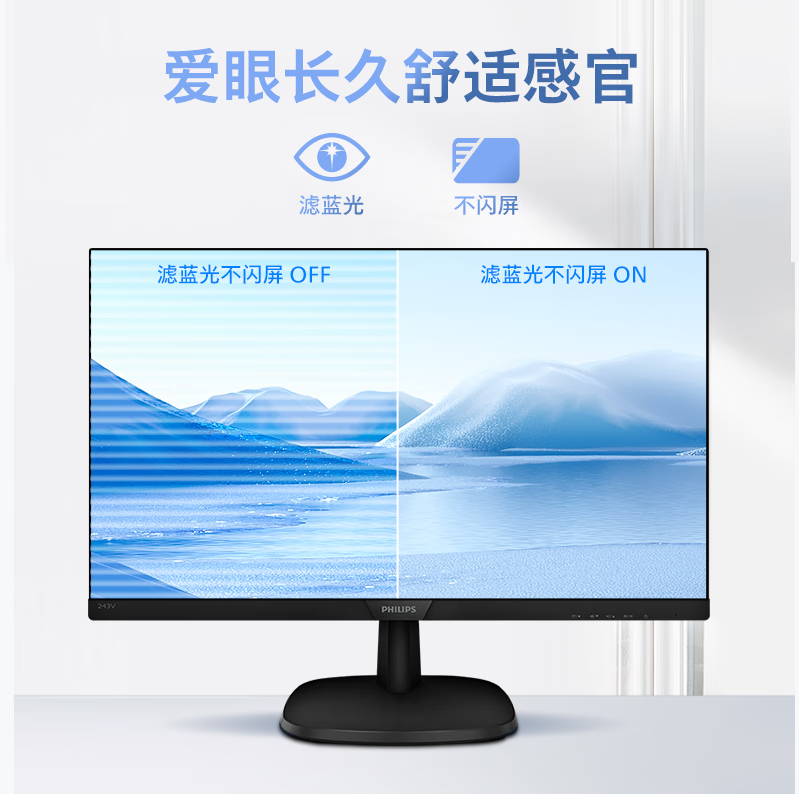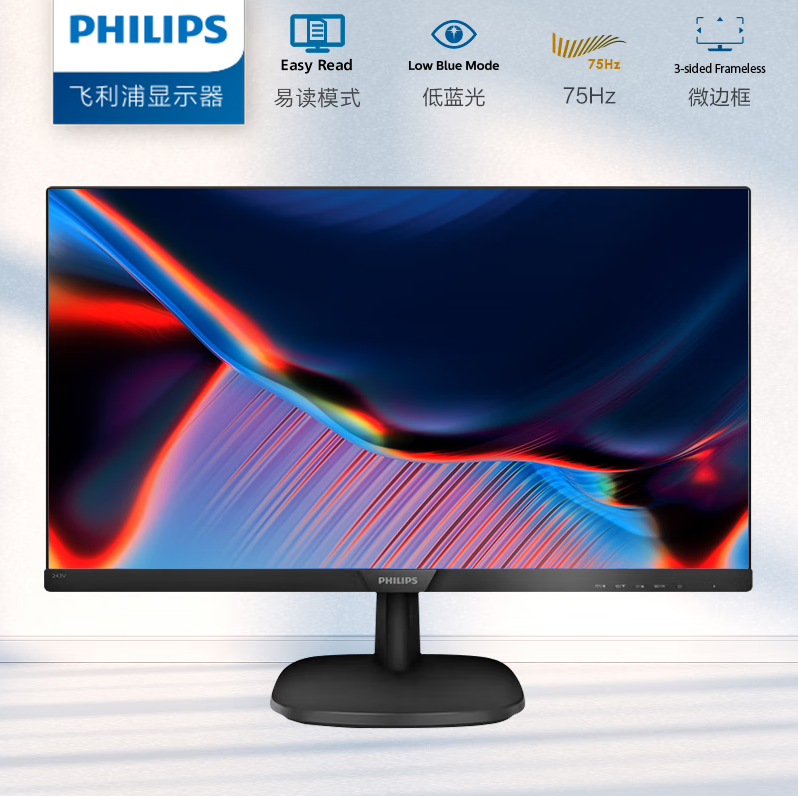 飞利浦 243V7QDSB 23.8英寸显示器 LGD-IPS FHD 75Hz TUV认证低蓝光 VGA/DVI/HDMI