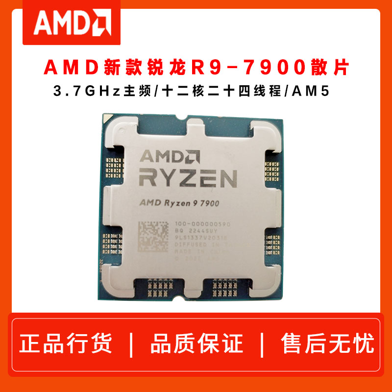 AMD锐龙9 7900 处理器 散片 (r9)5nm 12核24线程 加速频率至高5.4Ghz 65W AM5
