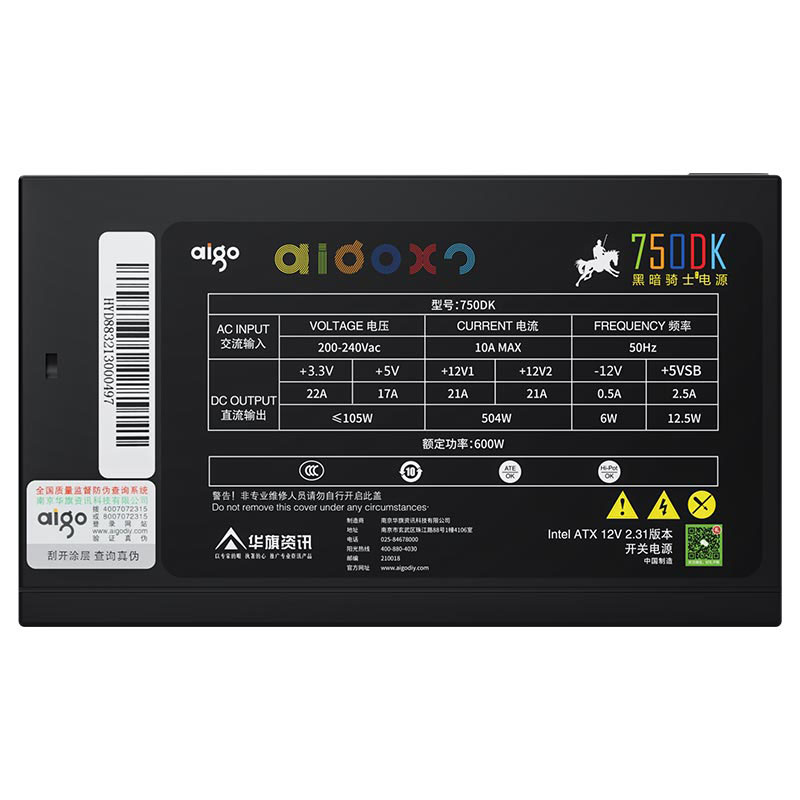 爱国者(aigo) 750DK黑暗骑士 (额定600W)DK系列台式电脑电源(主动式PFC/12CM风扇/智能温控/支持背线)