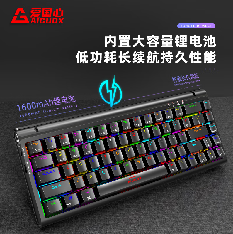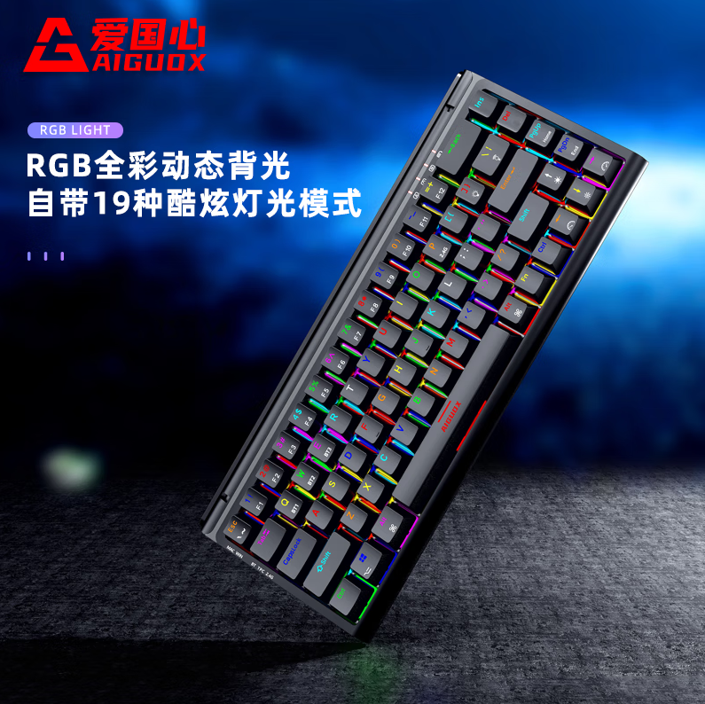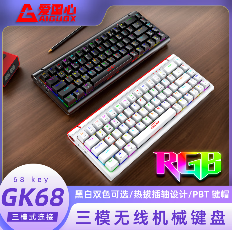 爱国心 GK68 黑色青轴 有线无线三模 热插拔2.4G蓝牙机械键盘 客制化键盘热插拔轴体68键位