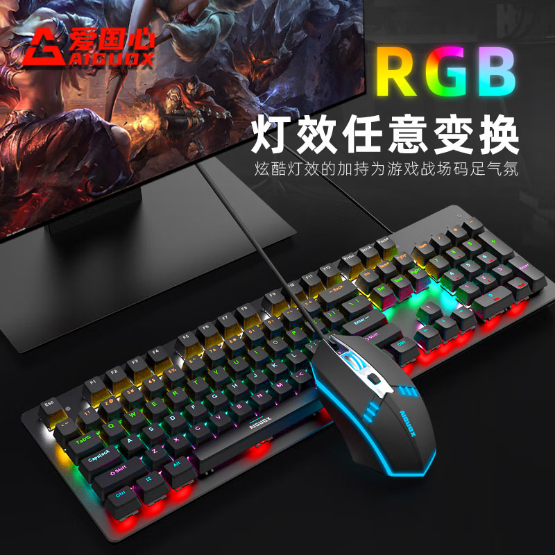 爱国者(aigo)V500有线键盘 静音 105键PC麦拉面板笔记本电脑一体机通...